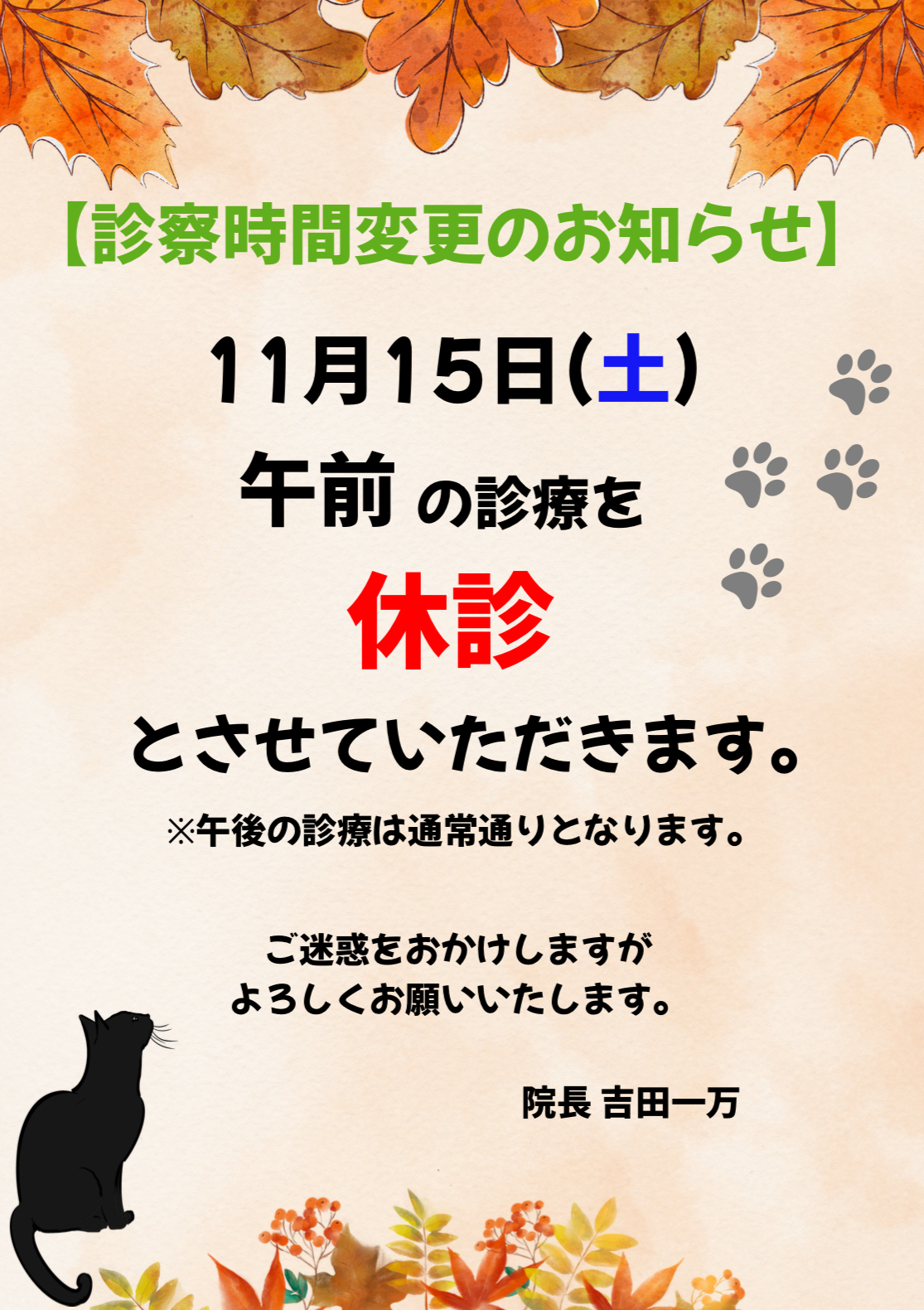 «前へ「11月15日(土)午前診療休診のお知らせ」 |